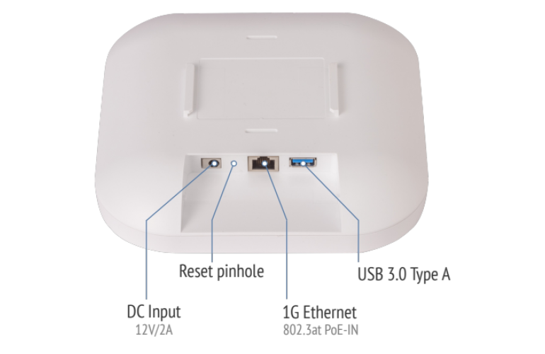 Ethernet PortsThe PAX1800-Lite features a 1G Ethernet and a USB 3.0 Type A port. The Ethernet port can be used as wired uplink, while the versatile USB port serves to connect IoT, modems or other USB devices. This multifunction port supports various wireless technologies such as Bluetooth, Zigbee, Z-Wave, LoRaWAN, LTE, and beyond—enabling integration into any smart environment. |