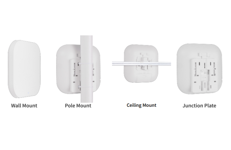 Mounting OptionsThe universal mounting kit included with the Access Point enables flexible installation on walls, ceiling grids, poles, or outdoor structures. It offers secure and straightforward mounting solutions for virtually any environment. |